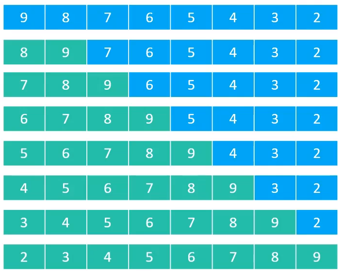 // 从左向右遍历原数组,将它放入有序数组中的合适位置