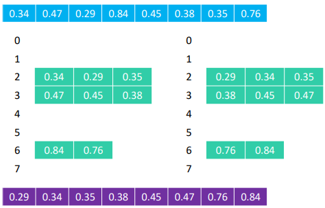 针对 0~1 的小数进行排序,定义一个规则:元素在桶中的索引 => 元素值 * 元素数量