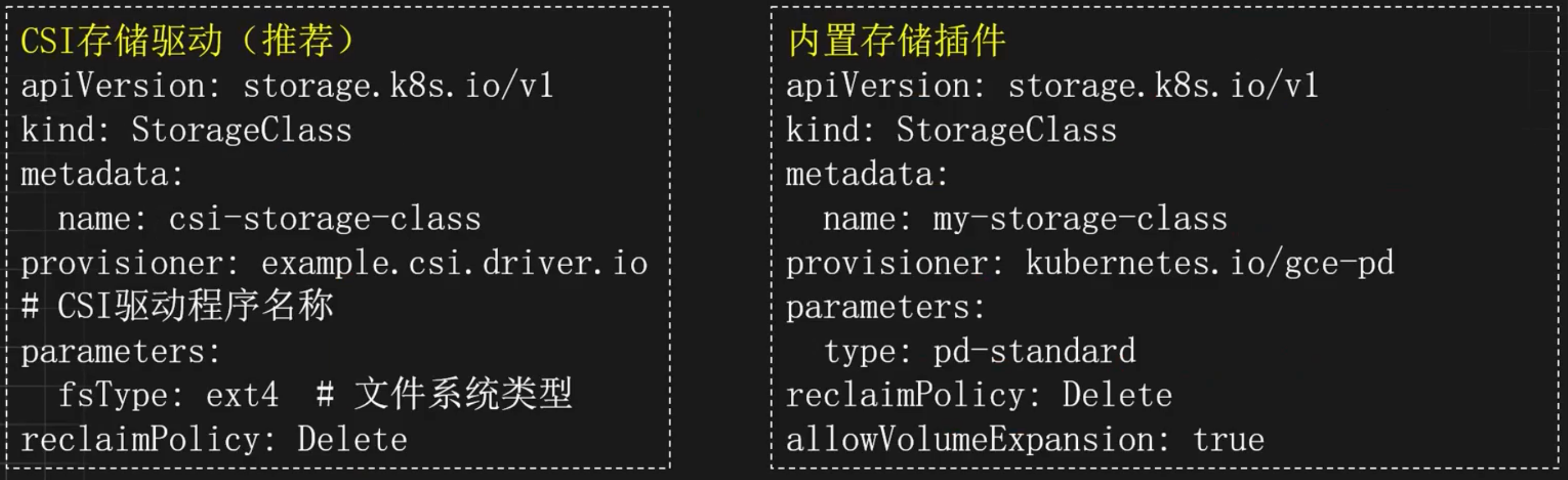 EmptyDir:临时目录,当Pod从节点删除时,EmptyDir中的数据也会被删除,常用于临时数据存储,如缓存、中间计算结果、数据共享等HostPath:节点数据共享,HostPath可以让容器直接访问节点上的文件或目录,常用于和节点共享数据ConfigMap&Secret:用于挂载ConfigMap和Secret到容器中Downward API:元数据挂载,主要用于容器访问Pod的一些元数据,比如标签、命名空间等(不推荐使用,可以直接使用env的方式去挂载元数据)NAS&NFS:网络文件系统,主要用于挂载远程存储到容器中,实现跨主机的数据共享和持久化PVC:PV请求,K8s中的一类资源,用于配置多种不同的存储后端