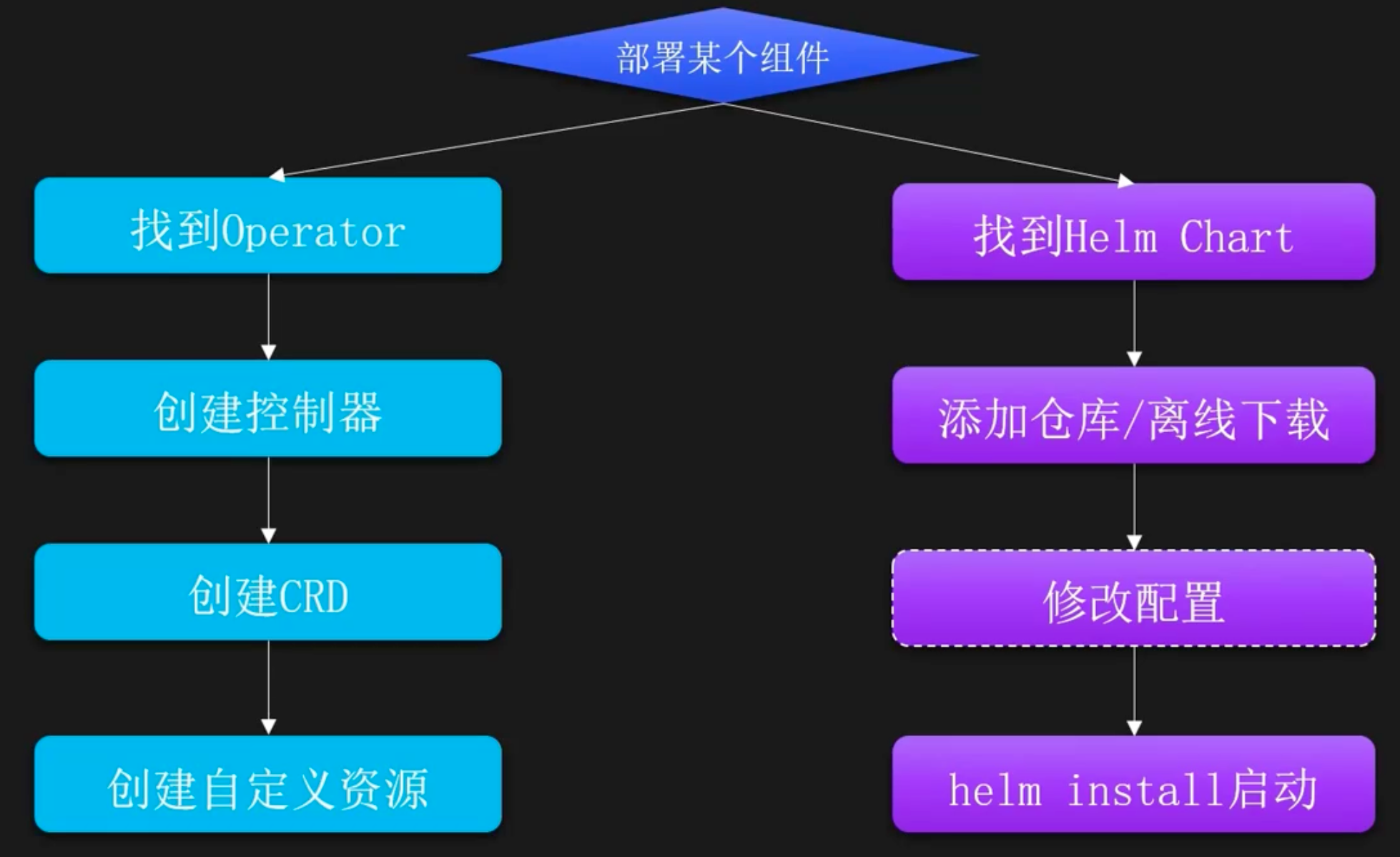 - 简化复杂应用的管理:像管理K8s资源一样管理复杂的系统